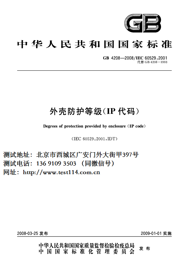 外壳防护IP67等级测试依据GB/T4208-2017,IEC60529:2001。
