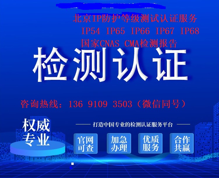 ——7)外壳防护等级认证:IP54、IP55、IP65、IP66、IP67、IP68防护等级认证及测试服务。