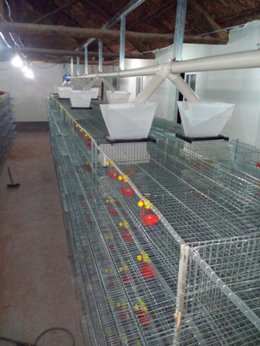 3、鹌鹑养殖笼从应用上归类。有普通人工养殖的笼子,有半自动化饲养的笼子,有全自动化饲养的笼子(机械化),立式笼通常适宜饲养数目少的中小型养殖户应用,这类笼子的优势是安装操作方便,占地面积少,相同的面积要比用梯式笼放的笼子多,养的鹌鹑多,缺陷是送料不便,清粪不便,不太好管控。阶梯式笼子适宜大规模饲养,可以安装鹌鹑上料机,鹌鹑自动清粪机,鹌鹑自动集蛋机,以及温控设备,一个人可以轻松管控十万只。
