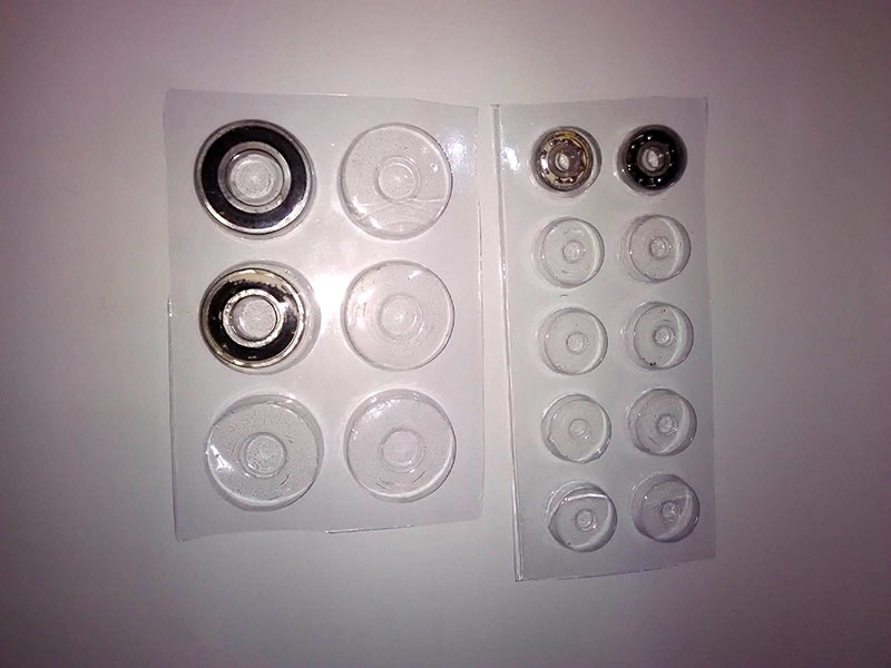 轴承在工业设备中广泛应用,是机械设备中一种重要零部件。它的主要功能是支撑机械旋转体,降低其运动过程中的摩擦系数,并保证其回转精度。轴承也是有大小区分的,传统小轴承包装是用纸盒包装,内衬用泡沫或海绵来起到保护作用,不防潮,不抗摔。而对于大轴承选用硬度好的木材质盒子进行包装,抗摔,但不防潮,木材质成本高,浪费资源,体积重。轴承吸塑盒包装是根据轴承外形做成的模具,把模具放到吸塑上,利用吸塑工艺把塑料片材加热变软后,真空吸附于模具表面,冷却后轴承吸塑包装成型。