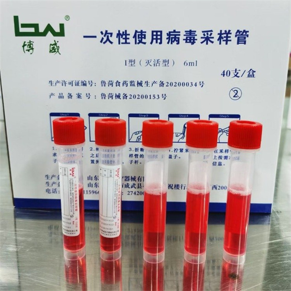 一次性使用病毒采样管由拭子和含病毒保存液的试管等组成,保存液为澄明液体,无沉淀、无块状等不溶性可见异物,拭子表面应清洁、无脏污。该产品适用于上呼吸道常见病毒样本的采集和保存,可通过咽拭子、鼻拭子取特定部位样本后保存,使病原菌保持较高的免疫学活力。【适用范围】