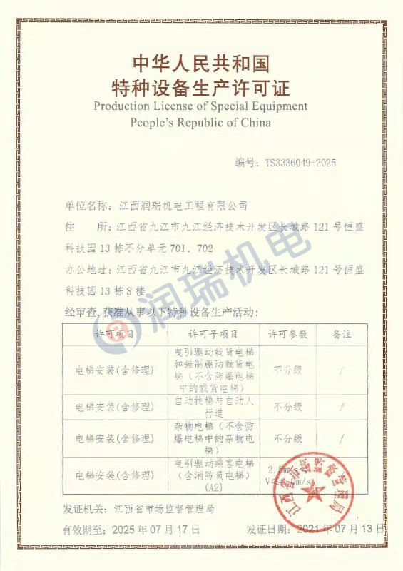 江西润瑞机电工程有限公司成立于2004年,是一家从事电梯销售、电梯安装、电梯、电梯配件供应、电梯维保为一体的化公司。18年来公司稳步发展,为各行业提供了几千部各类型电梯产品,润瑞机电积累了电梯安装调试技术,电梯技术持证人员70多人,在江西设有3个分公司,26家电梯维保站点,如您需要康力电梯,我们可提供技术咨询和上门测量服务。