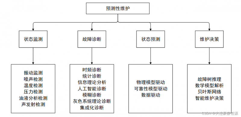 预测性维护的开展主要基于采集设备运行状态监测终端和数据采集终端,设备控制系统能够进行数据存储、分析、传输的上层系统或平台。