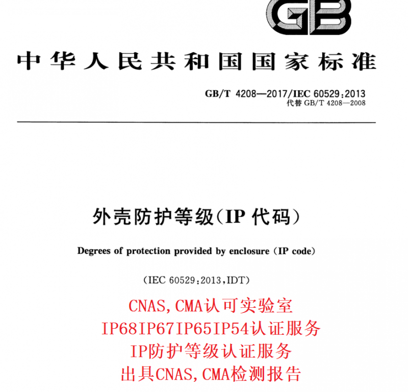 检测项目:GBT4208标准全项目防护等级认证测试服务,第三方检测机构,CNAS检测报告