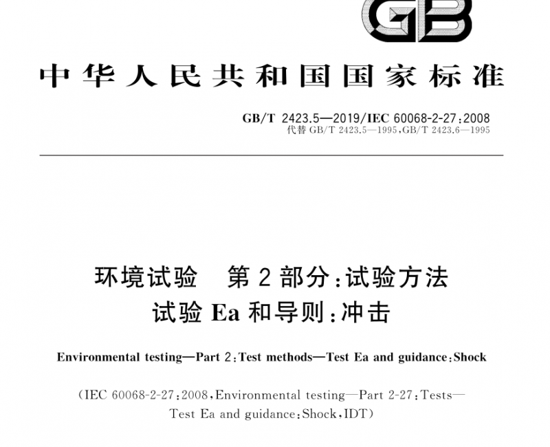 环境试验 第 2 部分:试验方法 试验 Ea 和导则:冲击 GB/T 2423.5-2019,IEC 60068-2-27:2008;