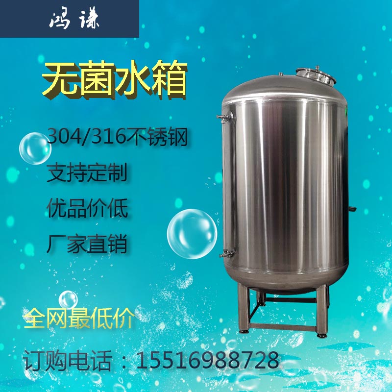 304不锈钢无菌罐作为缓冲罐根据用途不同可选用不锈钢304,316材质不锈钢水箱基础可采用混凝土条形梁,或工字钢。不锈钢水箱顶部对角设有透气空气过滤装置,规格和数量根据进口尺寸大小由生产厂家确定装置。