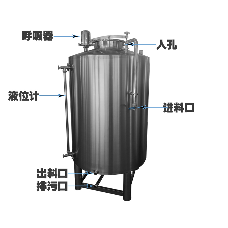 中层夹套为了我达到好的升温或降温的意图,不锈钢储酒罐厂家,需选用A3钢板或1Cr18Ni9Ti钢板制成,并且需求加强圈螺旋式装置,确保能冷水没有压力的从下到上边流通。