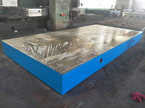 铸铁平台适用于各种大型工件,铸件检验工作,测量用的基准平面;用于机床机械检验测量基准。检查零件的尺寸精度或形为偏差,并作紧密划线,在机械制造中也是不可少的基本工具。一般一块平台可以达到正常大小的工件检验,划线等工作,但是遇到大型铸件或工件,比如船舶制造行业,单块平台就无法达到检验,划线等工作要求了,这时就需要将几块甚至十几块平台进行拼接,形成一块大的组合平台拼接平台再对大型的铸件,工件进行检验,划线,装配等工作。