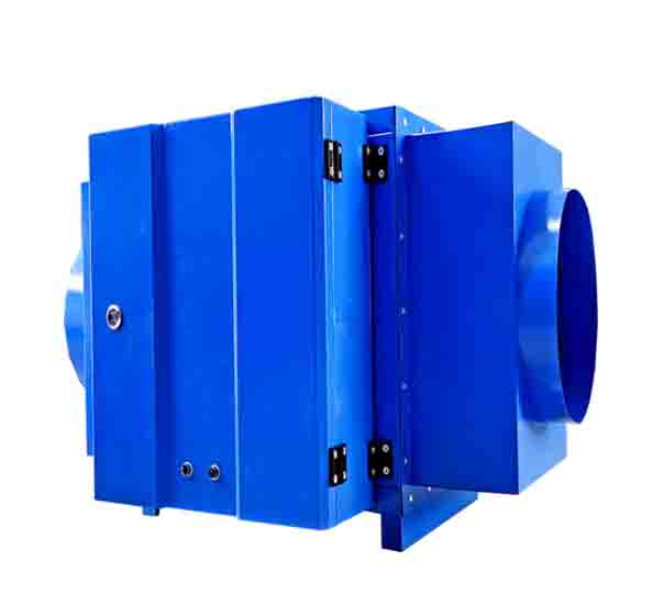 前置机械式金属过滤器,采用数控工艺,采用重力和碰撞原理,分离大颗粒油脂,均风散流,不锈钢电离器,sus304材料,使气体离子化,强电场使颗粒物带电,成为带电颗粒。铝合金集尘器,带电颗粒到达第二段集尘器后使粒子撞击至收集电集吸附,96%以上的污染物被滤除,设备可以有效收集大于0.1微米的颗粒油脂。