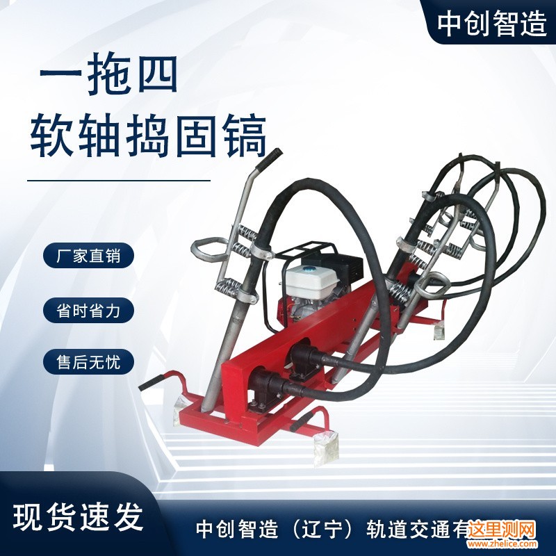 一带四软轴捣固机是一种新型铁路养路机械,该机具适用于铁路线路道砟道床的捣固作业,使用时可利用列出间隔作业,上下道方便,安全可靠,对正线线路及道岔可进行全方位捣固作业。具有捣固质量好、作业效率高、作业无死角等特点,是线路维修、新铺线、道砟清筛后道砟捣固及道岔捣固作业的必备理想机具。
