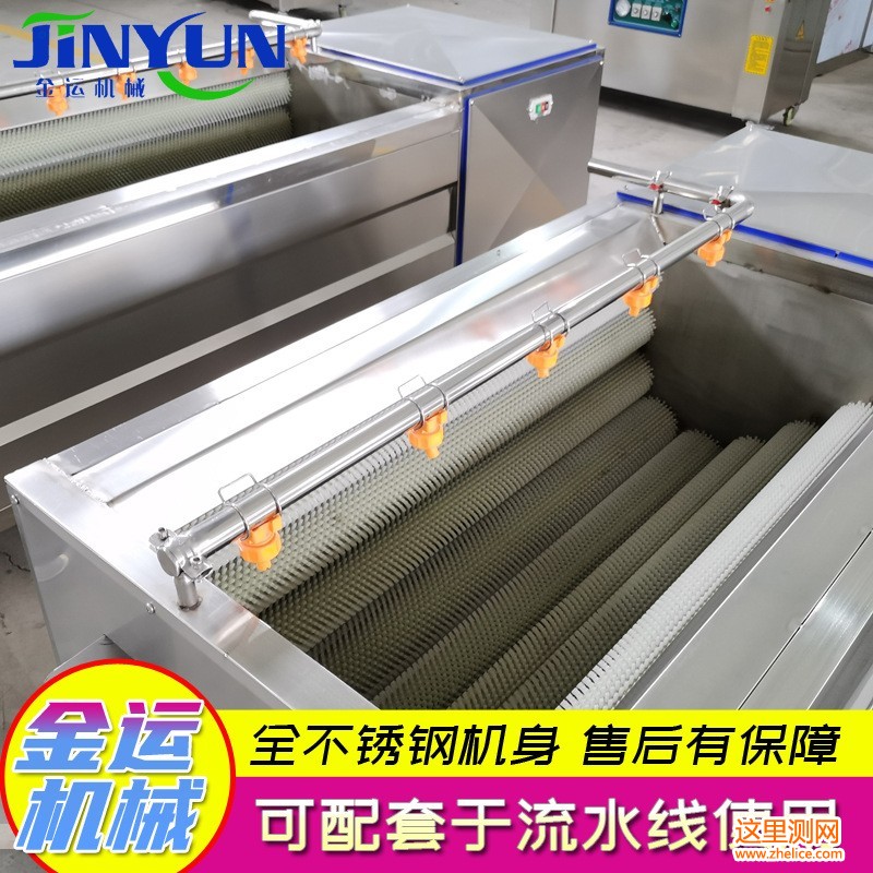 另外加装毛刷,能有效去除物品中的毛发。高压水流使物料呈翻滚状态,去除产品表面农残功效,洗菜机里漂浮物可以从溢流槽溢出,沉淀物从口排出,以达到清洗的目的。